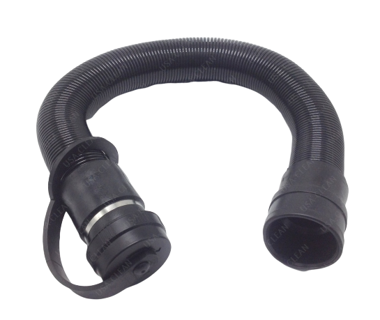 Black drain hose assembly for recovery tank. Fits Tennant T500. Replaces 1225793.